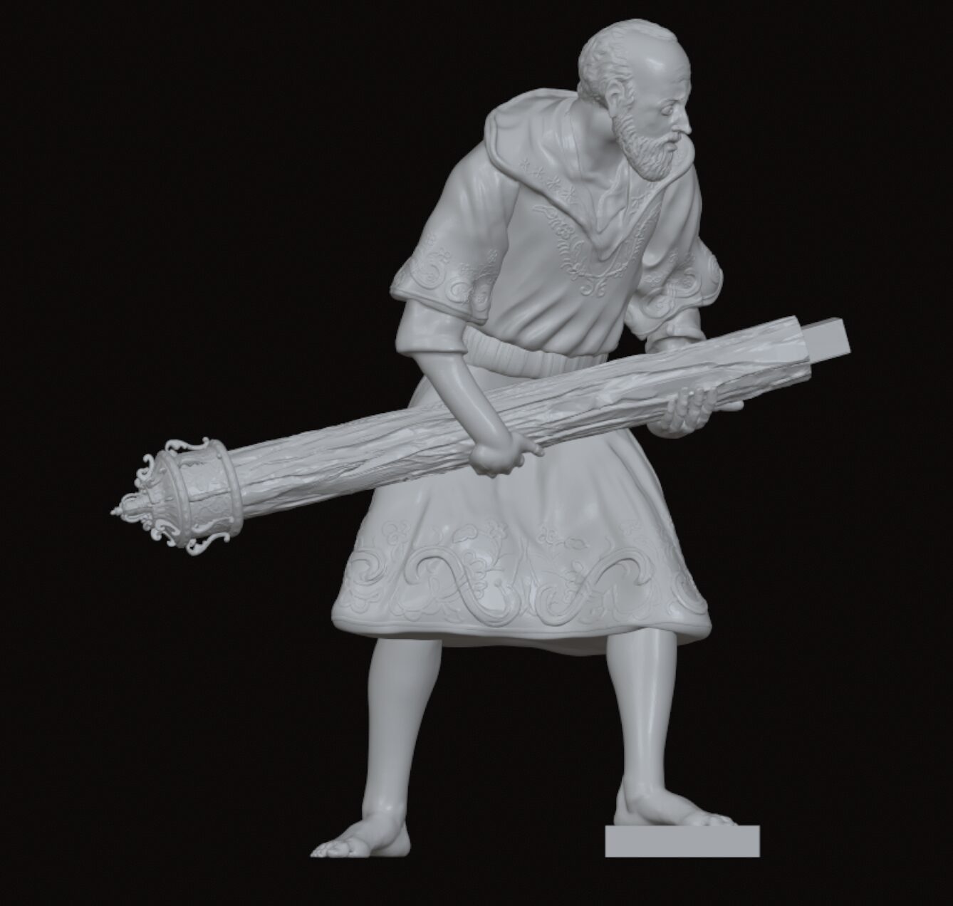 Cirineo: Incluido en el paso, cuya cabeza se data entre los siglos XVII y XVIII. Este misterio, que procesiona en la Madrugá del Viernes Santo, forma parte de la Hermandad de la Esperanza de Triana, una de las más antiguas y populares de Sevilla, con sede en la Capilla de los Marineros.