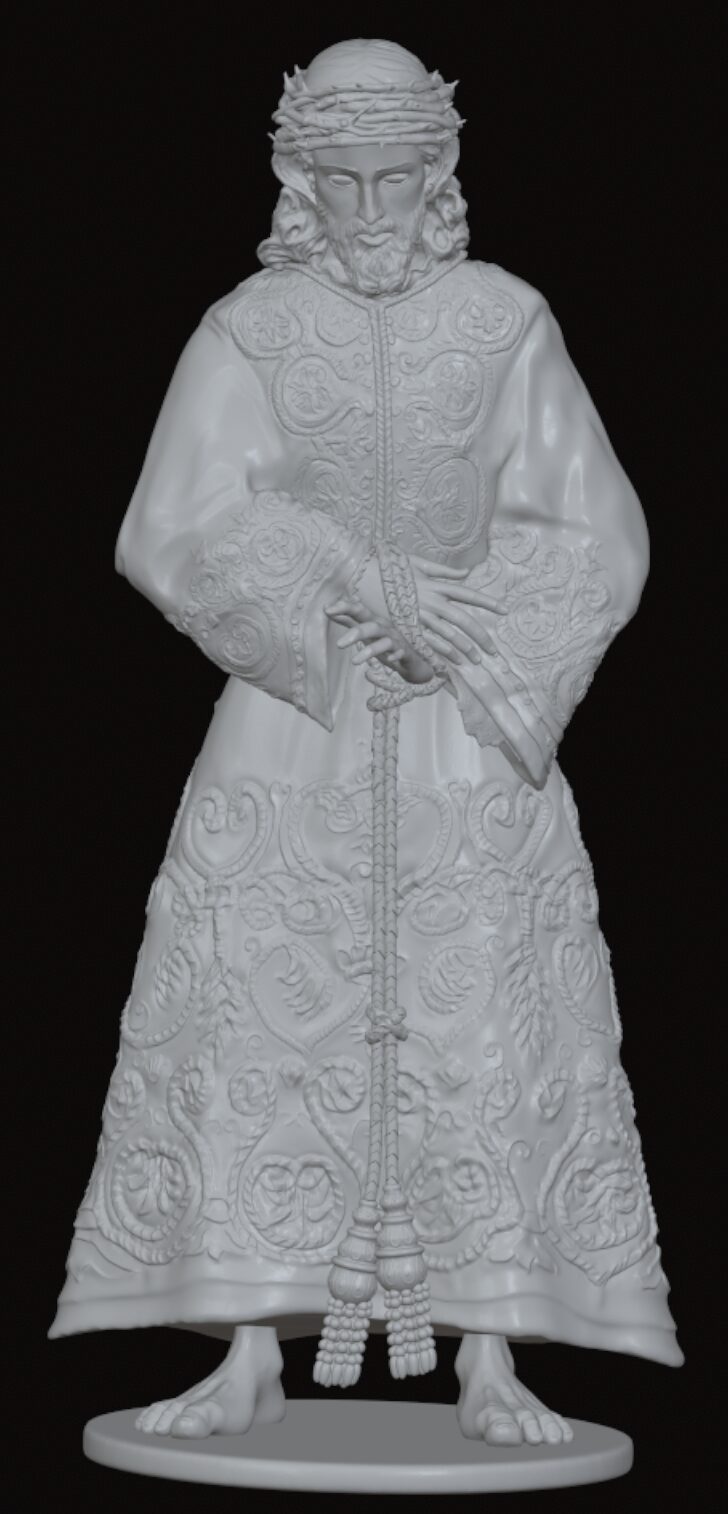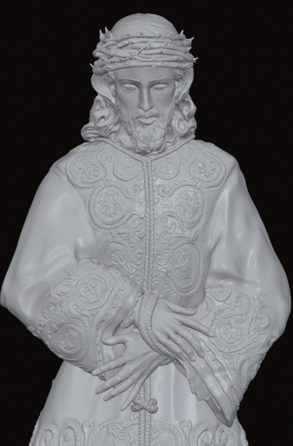 Nuestro Padre Jesús de la Sentencia, titular de la Hermandad de la Macarena de Sevilla, es una imagen barroca de 1654 atribuida a Felipe Morales Nieto. Representa a Cristo maniatado y coronado de espinas con expresión serena pero dramática, escuchando su sentencia de muerte por Poncio Pilato, reflejando humildad y divinidad en el Pretorio.